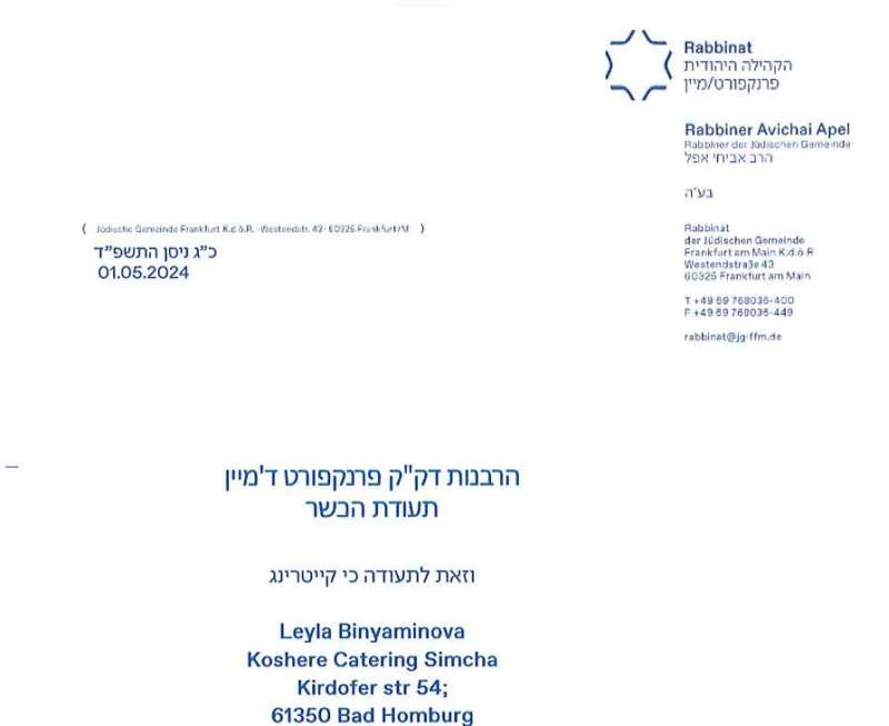 Сертификат кошерности - 2023